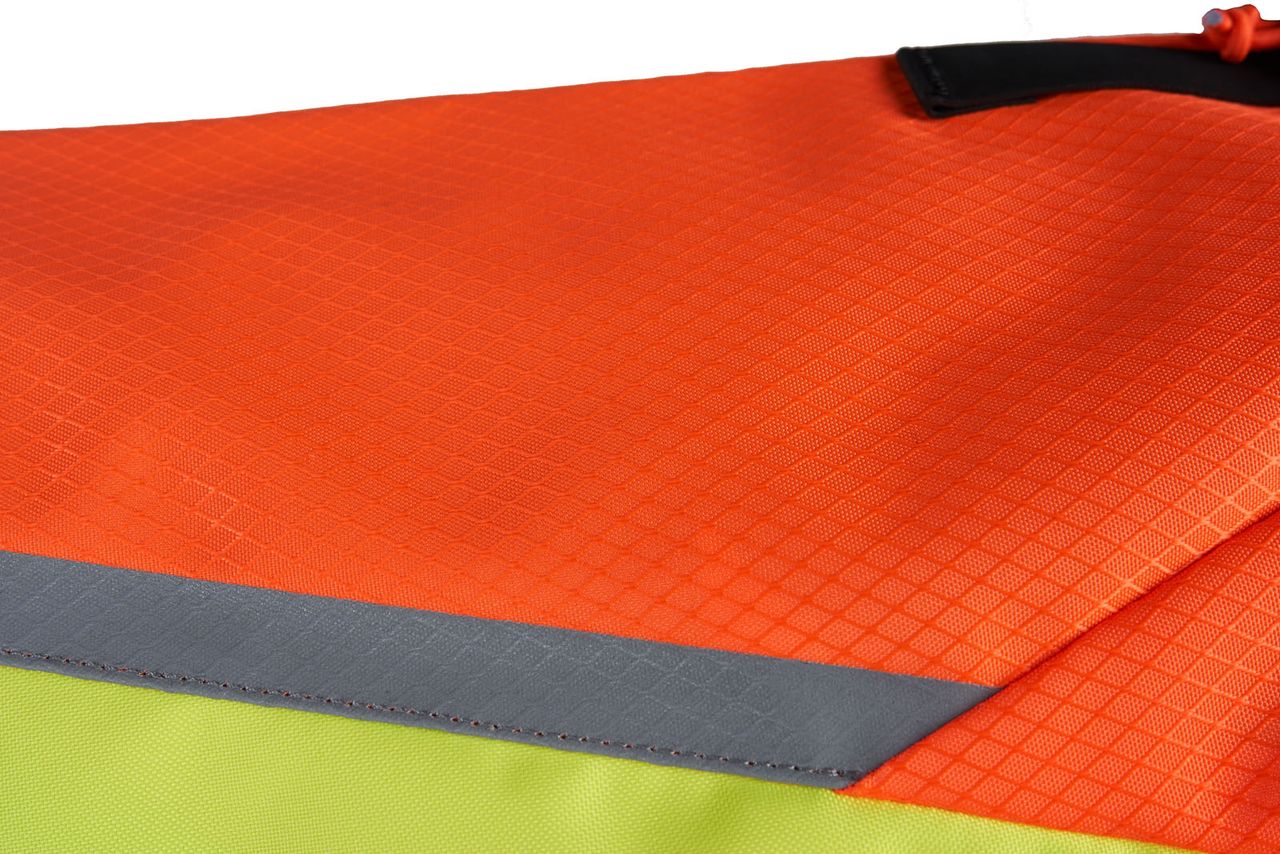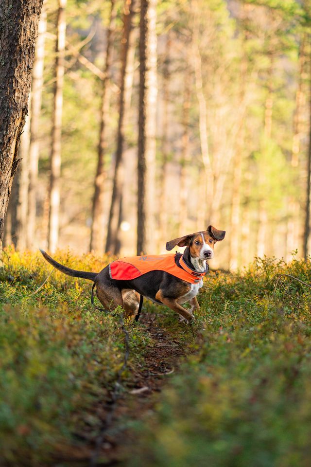 Kõrge nähtavusega oranž materjal ja 3M helkurdetailid muudavad koera märgatavamaks. |